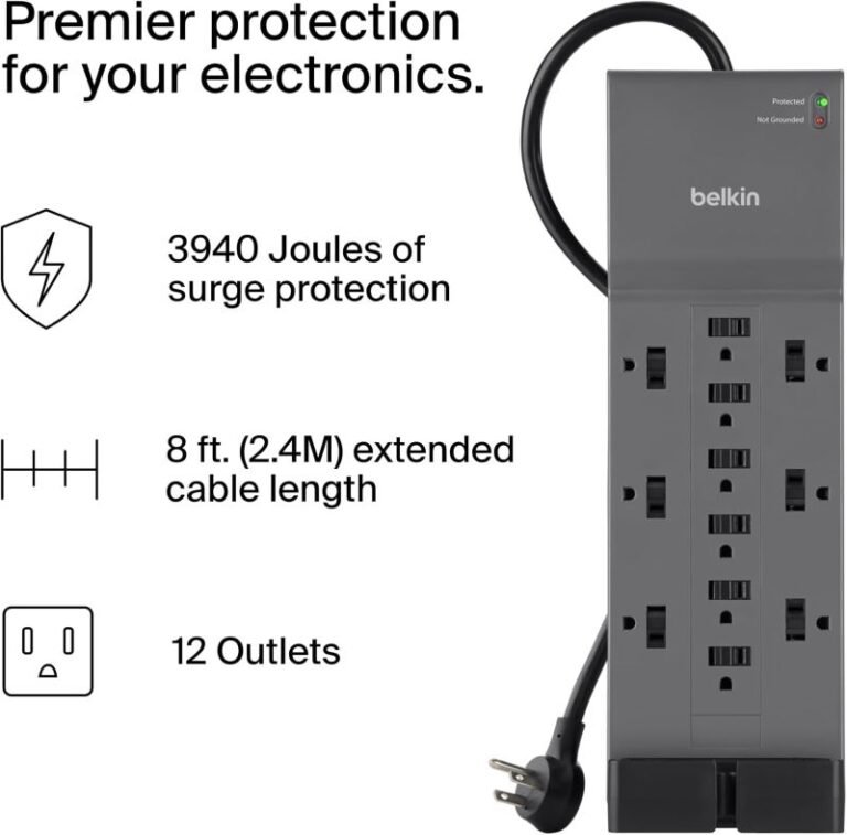 The Belkin 12‑Outlet Surge Protector Power Strip delivers professional‑grade protection and power distribution for…