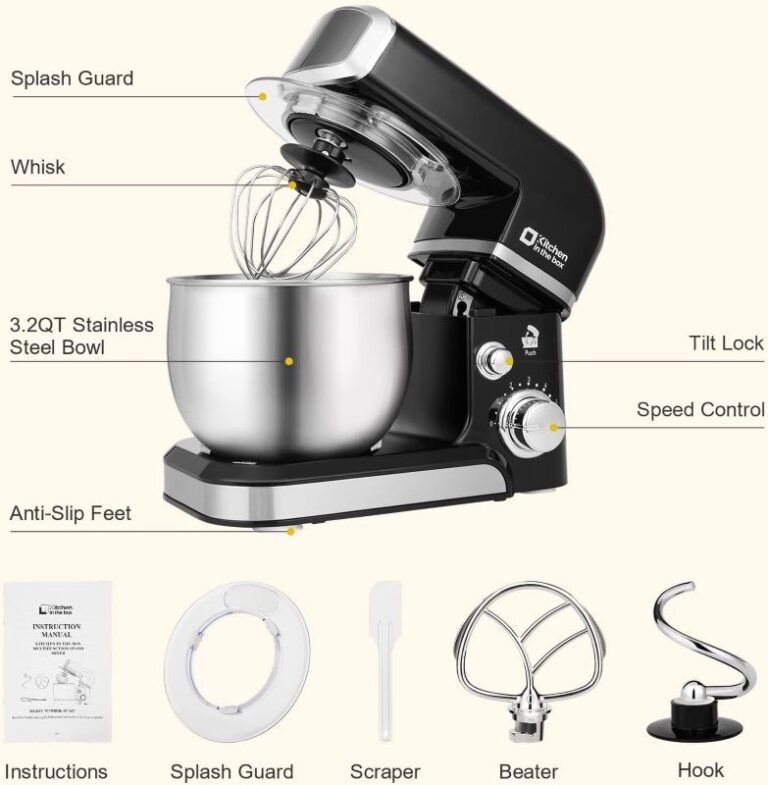 The Kitchen in the Box Stand Mixer is a 3.2Qt compact electric food mixer…
