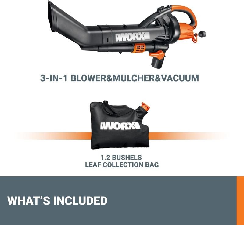 • Brand: WORX WG509 Trivac 3‑in‑1 Electric Leaf Blower/Vacuum/Mulcher