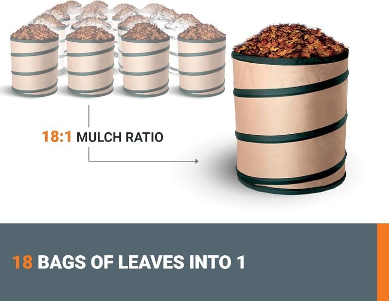 • EFFICIENT 18:1 MULCH RATIO: Reduce workload by mulching 18 bags of leaves into one.