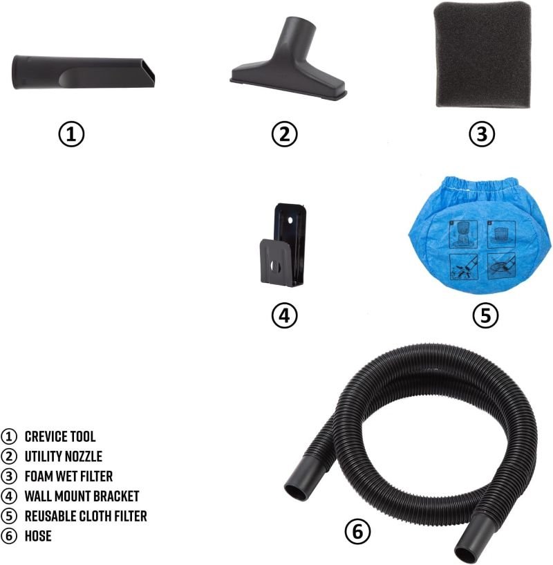 • 6 ACCESSORIES INCLUDED: Equipped with a 6-ft cord and 4-ft hose, this vacuum is designed to handle various cleaning needs