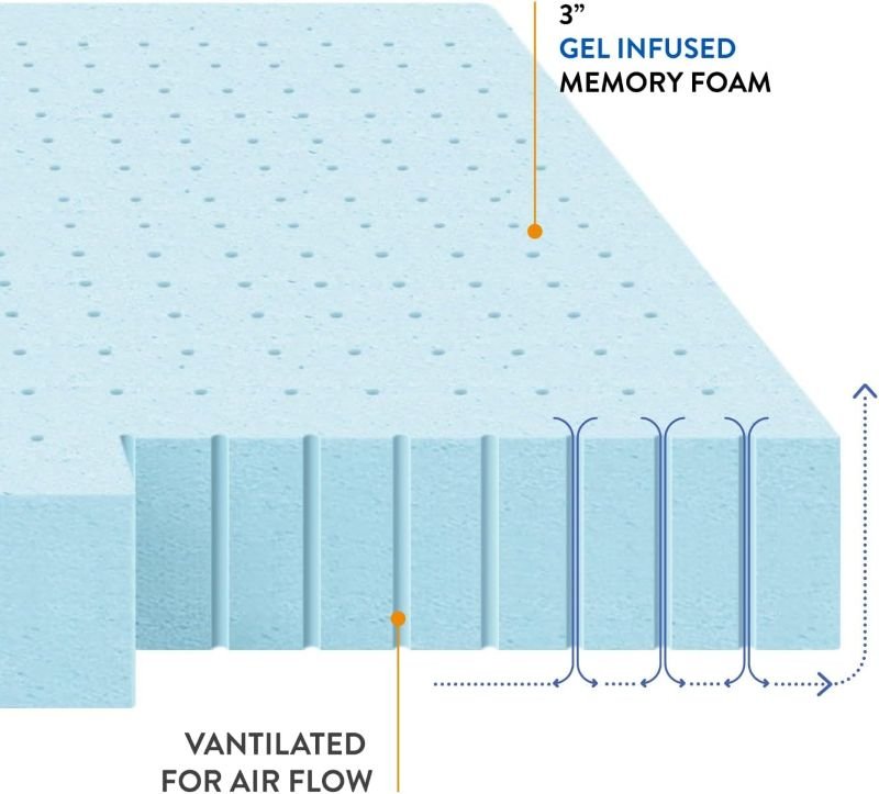 • Type: 3-Inch Ventilated Gel Memory Foam Mattress Topper.