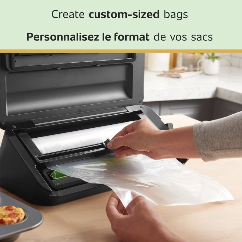 The FoodSaver Custom Length Vacuum Sealer Bags Multipack is engineered to lock in freshness and protect food from freezer burn with durable, multi-layer construction that forms a strong, airtight seal. This 5-roll set (two 8″ x 20′ and three 11″ x 16′) lets you create custom-sized bags for meats, vegetables, leftovers, and bulk buys, eliminating waste and maximizing freezer space. Specially designed air channels remove oxygen efficiently, helping food stay fresh up to 5x longer than traditional storage bags or containers. These BPA-free vacuum sealer rolls are safe for storing both raw and cooked foods and can be used in the freezer, refrigerator, microwave, and for sous vide cooking up to 195°F/90°C. Fully compatible with FoodSaver vacuum sealing systems, they provide reliable sealing performance that home cooks, meal preppers, and sous vide enthusiasts trust for long-term food preservation.