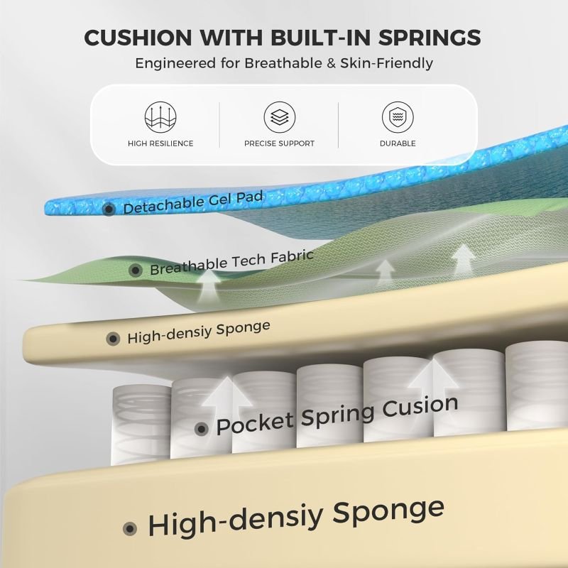 • Individually Pocket Springs: The seat cushion features pocket springs, a technique commonly used in sofas. Each spring operates independently, conforming to pressure and body weight to deliver resilient support and a luxurious comfort experience comparable to high-end gaming chairs.
