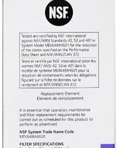 - Only genuine LG Water Filters are certified by NSF International to meet industry-leading filtration standards (NSF42, NSF53, NSF401).