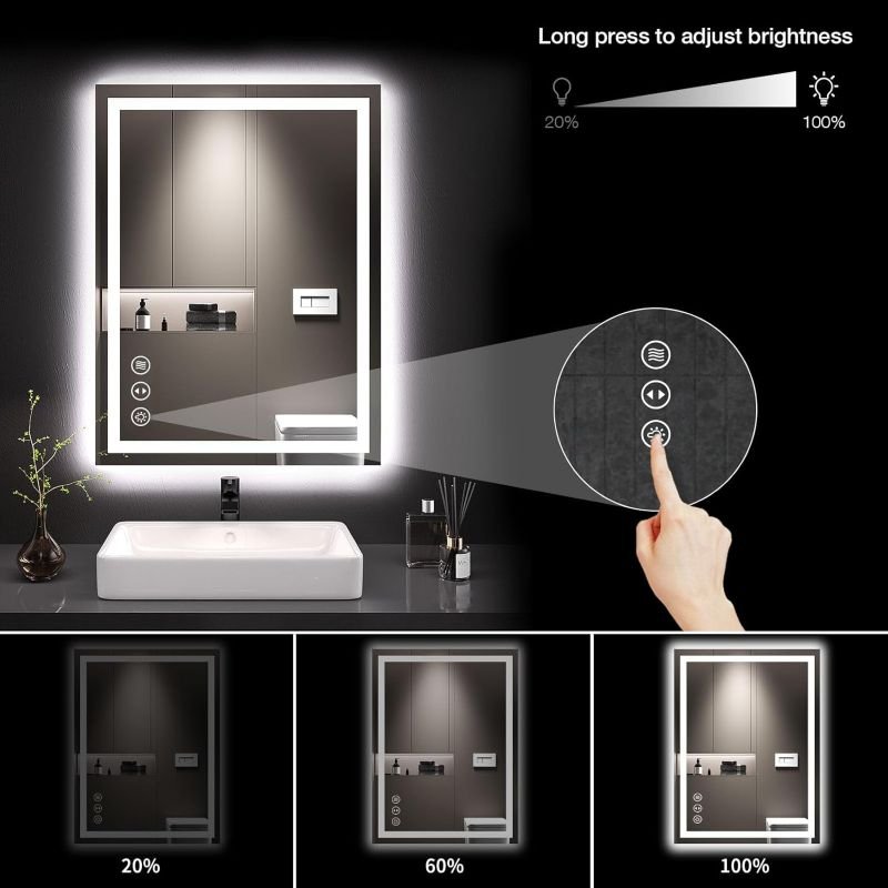 - 【Dimmable & 3 Color Temperature】: The brightness is adjustable for the lighted bathroom mirror; Simply long press the touch switch to adjust the brightness; 3 color temperature for option; warm light (3000 K); natural light (4000 K); white light (6000 K)
